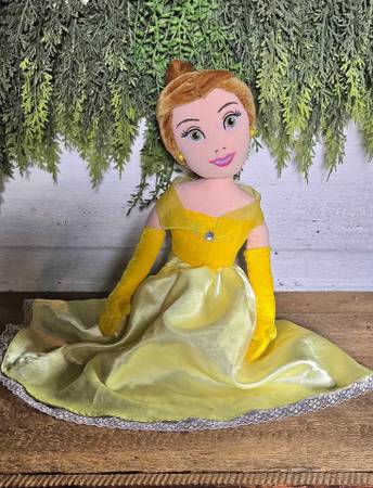 Disney Beauty and the Beast sitting Belle plush doll. There are some snags on the dress.