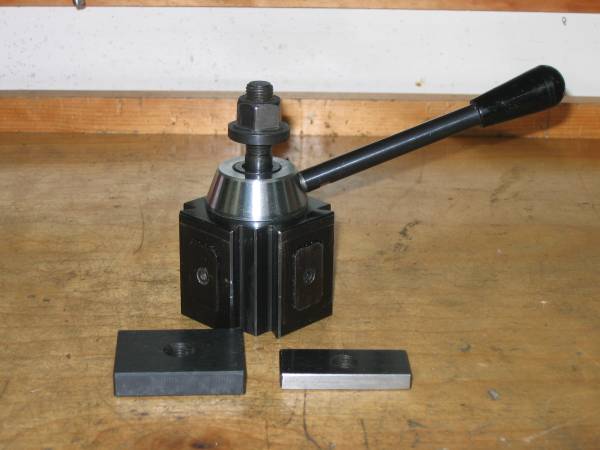 Quick Change Tool Post for 12" (6" Swing) lathe. Model AXA Tool post holder only no blocks. Used in good condition. One clamping plate is brand new the other is cut to fit Atlas Craftsman 12" lathe .