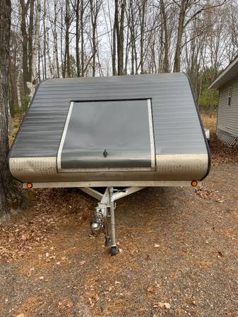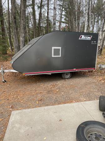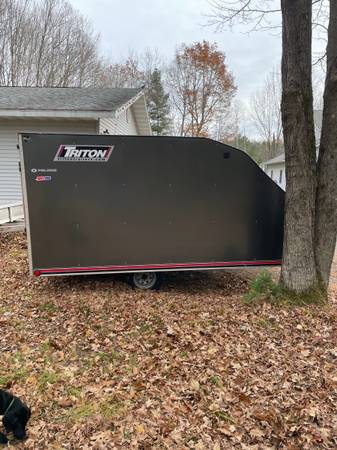 2018? Triton two-place snowmobile trailer. Includes floor protection and spare tire. Has easy lube wheel bearings. Overall it is in good shape.